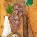 Der Klassiker: Unsere nordhessische Bio-Stracke wird traditionell hergestellt aus frischem Fleisch von unseren Bioland Schweinen. Gutes Futter von unseren Feldern schafft die besten Voraussetzungen für diese Spezialität. Bei der Herstellung der Ahlen Wurst verwenden wir kein Salpeter und kein Nitritpökelsalz. Das macht sie zu etwas ganz Besonderem. Ihre rote Farbe verdankt sie allein dem guten Bio-Fleisch, dem Buchenrauch und den natürlichen Prozessen während der schonenden Reifung in unserer Lehmkammer. Dabei verliert sie bis zu 50% ihres ursprünglichen Gewichts.